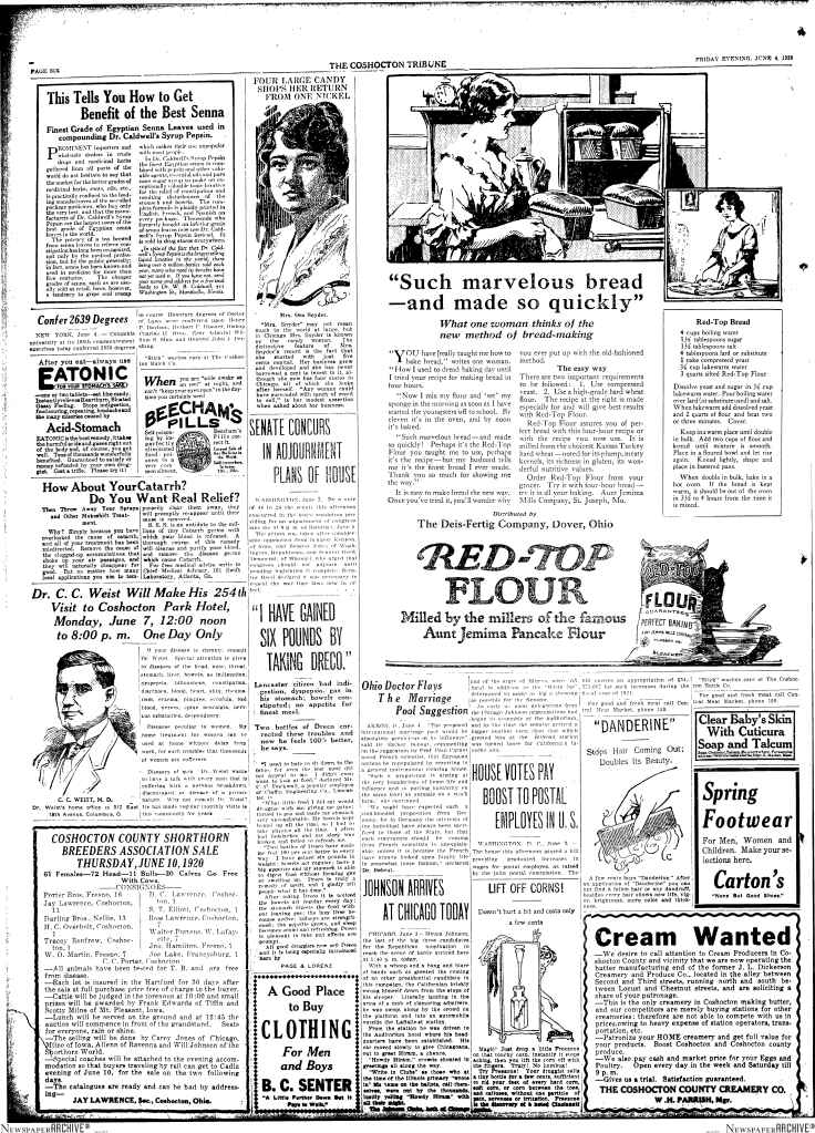 Coshocton Tribune, Coshocton, Ohio June 4, 1920, page 6