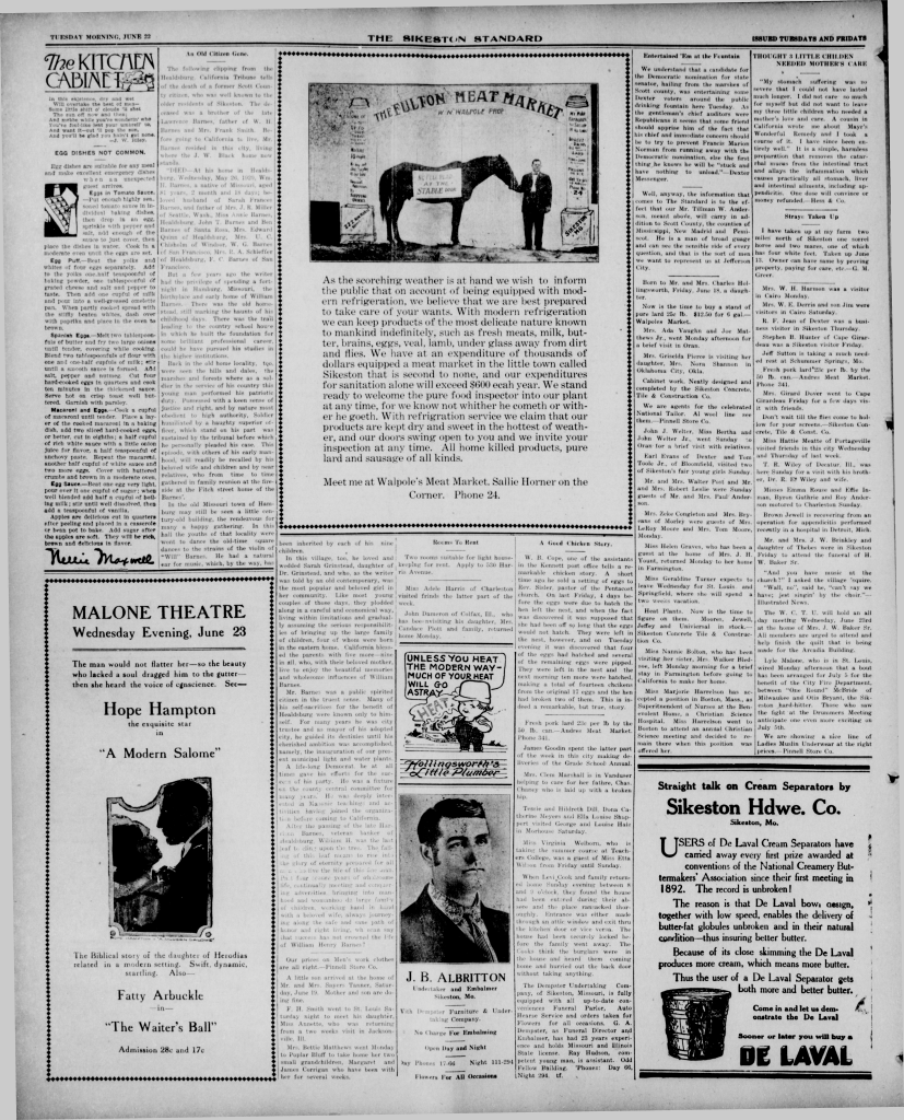 Sikeston Standard, Sikeston, Missouri June 22, 1920, page 8