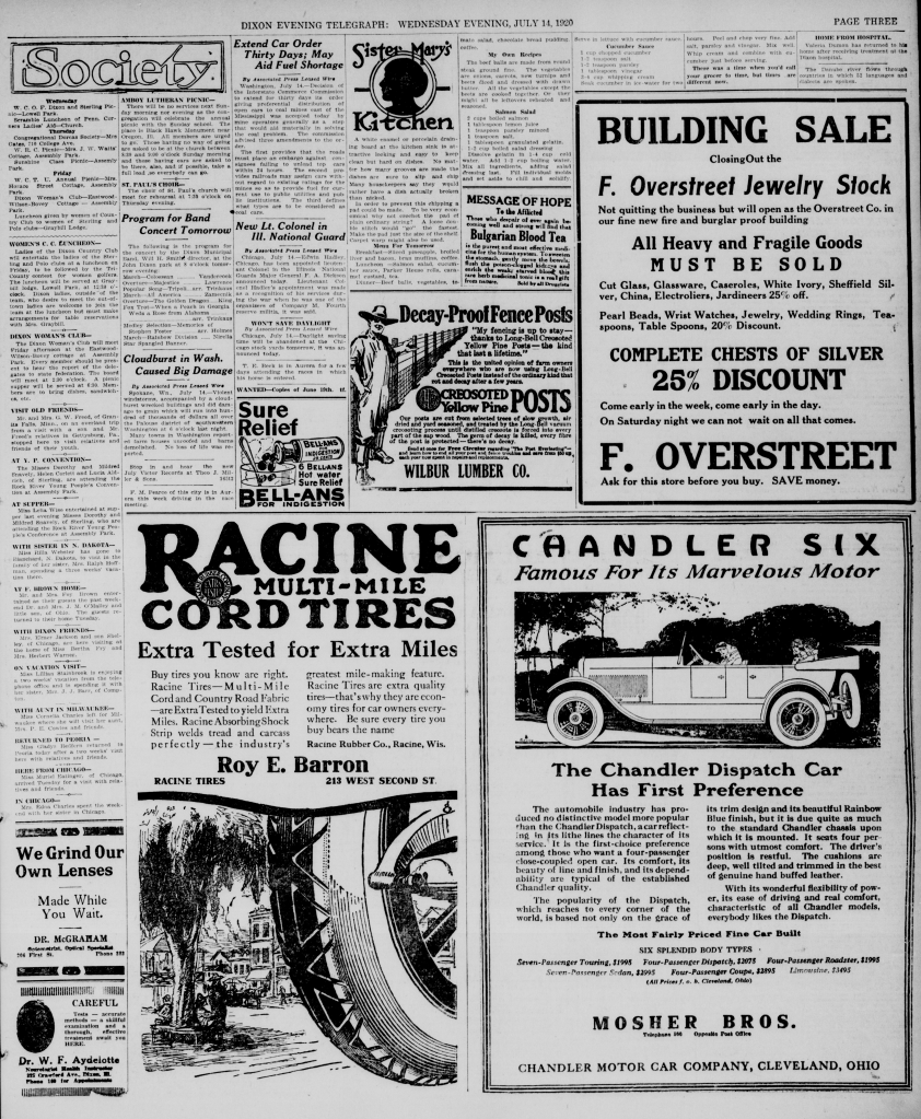 Dixon Evening Telegraph, Dixon, Illinois July 14, 1920, page 3
